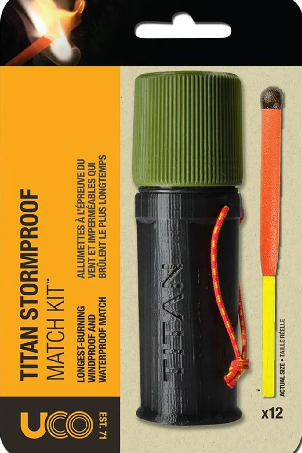 AfmetingenGewicht (g)50Overige kenmerkenProductomschrijvingDe Uco Titan Stormproof Match Kit bestaat uit extra grote Sto…