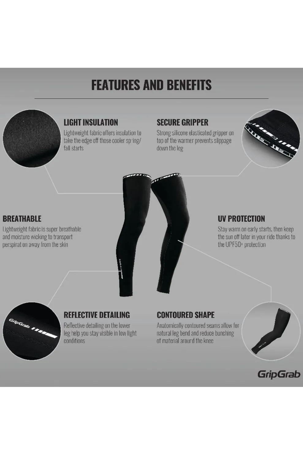 De GripGrab Beenwarmers Light zijn lichtgewicht beenwarmers die ideaal zijn voor koele lente- en zomerdagen. De superstretch, licht isolerende stof neemt de kou weg, maar beperkt je bewegingsvrijheid niet. Minimaal volume, maar aanzienlijk meer comfort.