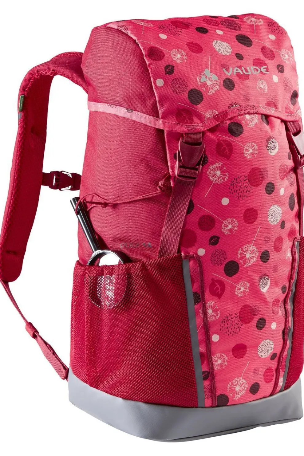 De Puck 14 kinderrugzak is compleet herzien en in de actuele versie nóg beter aan de wensen van de kinderen aangepast. Hij beschikt over een waterdichte bodem en kan daardoor probleemloos op vochtige en natte ondergrond worden gezet. Zijn speciaal op kinderen gerichte draagsysteem met verstelbare borstriem zorgt voor een hoog draagcomfort. Voor regenbuien is een hoes aan boord, daarbij komen twee ruime buitenvakken, een licht gepolsterde zitmat, reflecterende print en een topvak, dat plaats biedt voor zakdoeken en kleine spulletjes. Opdat ook de ontdekkingsdrang voldoende wordt gestild, heeft VAUDE de Puck 14 kinderrugzazk van een loep voorzien: Kleine schatten en anderen dingen, die onderweg gevonden worden, kunnen daarna aan de materiaallussen van de rugzak worden bevestigd. Zo is de Puck 14 een echt universeel genie voor het natuurkinderdagverblijf, wandelvakantie en de eerste avonturen in de bergen. Deze rugzak bestaat deels uit gerecycled materiaal en is met Eco Finish zonder fluorkoolstoffen (PFC) milieuvriendelijk waterafstotend gemaakt. Het VAUDE Green Shape-label staat voor een milieuvriendelijk, functioneel product uit duurzame, bluesign gecertificeerde materialen.