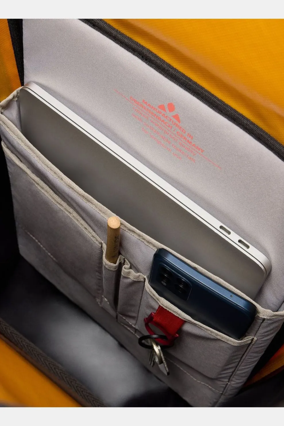 De 2-in-1 tas biedt veel opbergruimte met een doordacht interieur, inclusief een gepolsterd laptopvak voor apparaten tot 13,3″ en extra vakken voor smartphones, pennen, enz. De tas kan aan de zijkant op drie niveaus gecomprimeerd worden, afhankelijk van de belading. Het robuuste textielmateriaal is waterdicht gelast en volledig PVC-vrij. Reflecterende logo’s zorgen voor meer zichtbaarheid.