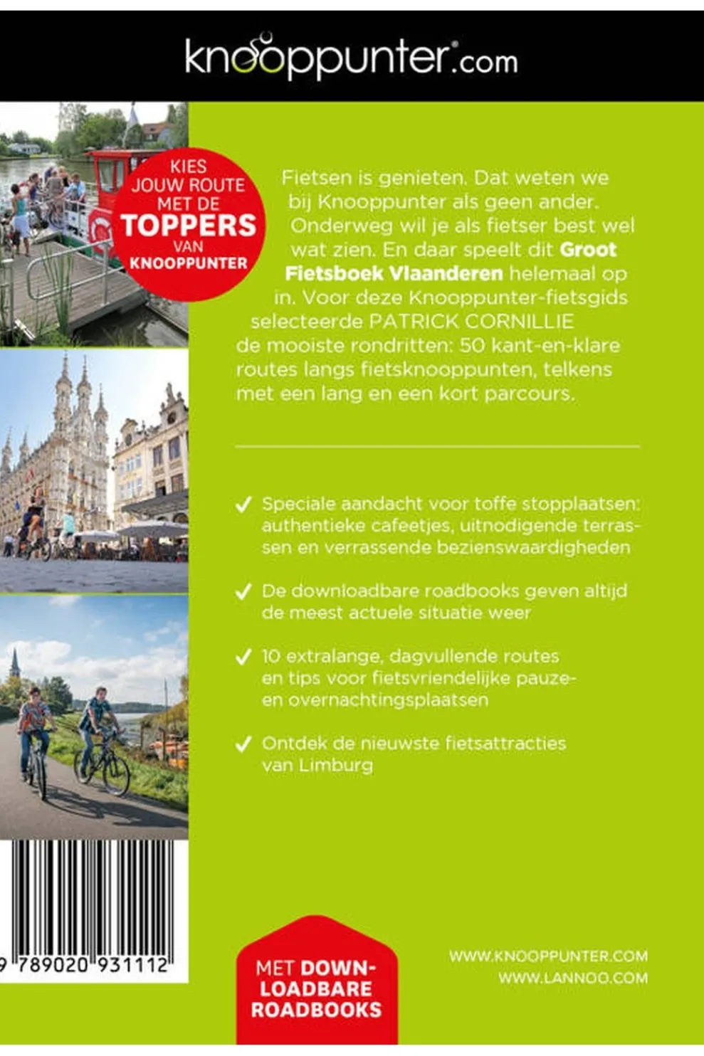Onderweg wil je als fietser best wel wat zien. En daar speelt dit Groot Fietsboek Vlaanderen helemaal op in. Voor deze Knooppunter-fietsgids selecteerde Patrick Cornillie de mooiste rondritten: 50 kant-en-klare routes langs fietsknooppunten, telkens met een lang en een kort parcours.