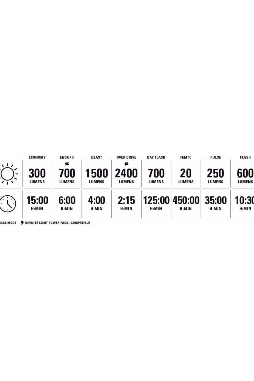 Het profiteert ook van vijf LED’s die ervoor zorgen dat elke lumen wordt omgezet in effectieve verlichting door een ideaal straalpatroon te creëren voor snel rijden over gevarieerd terrein. Compatibiliteit met de Infinite Light Power Pack+ biedt veelzijdigheid en verbeterde prestaties. Een veelzijdige band bevestigt de lamp veilig aan alle gangbare stuurmaten, en extra accessoirebevestigingen zorgen voor verschillende alternatieve montagemogelijkheden.