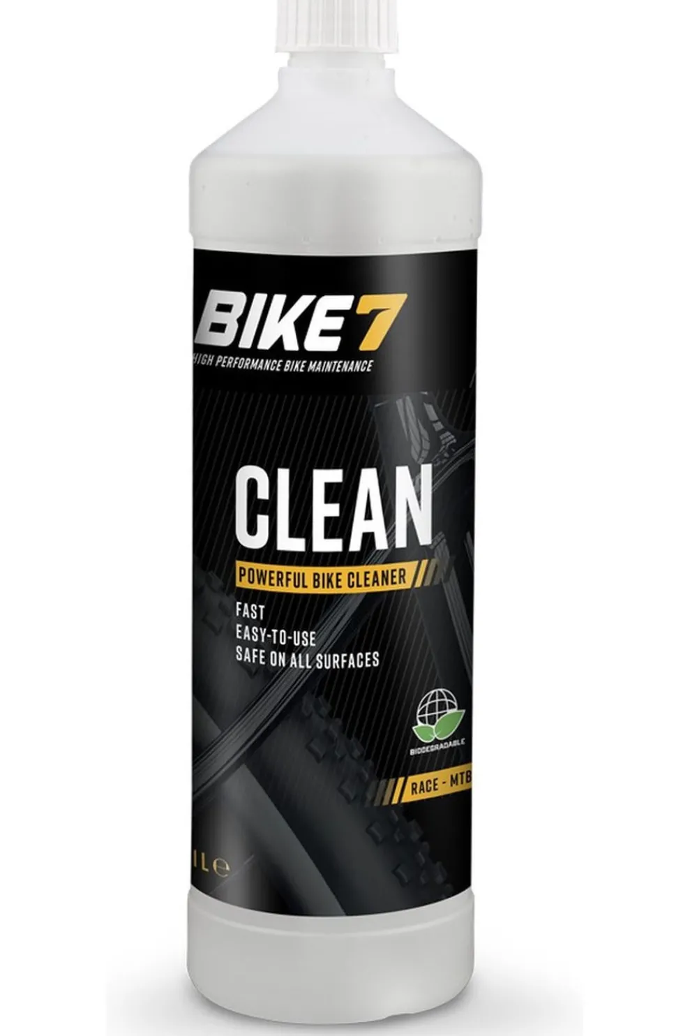 Bike7 Clean breekt snel de moleculaire structuur af van vuil dat zich aan je fiets hecht. Aarde, modder, zand, sporen van drank, zweet en vet worden door capillaire werking losgemaakt en vervolgens geëmulgeerd om door eenvoudig spoelen te worden verwijderd.