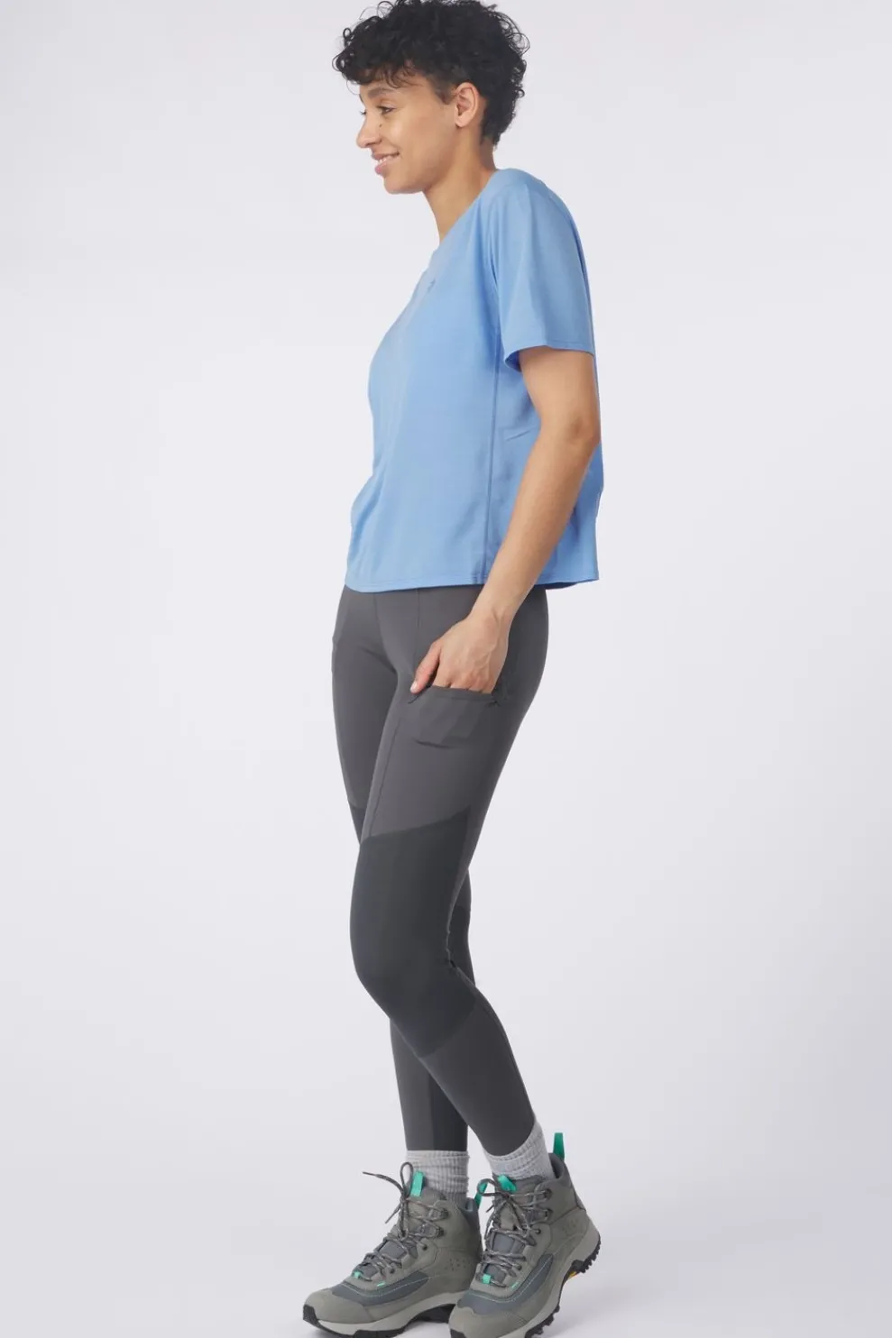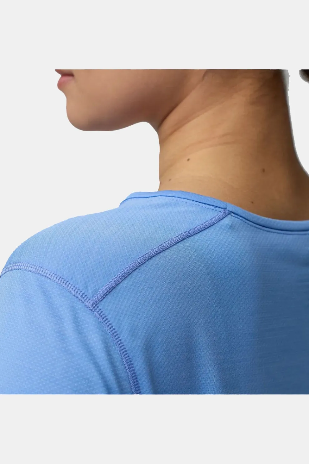 De iets kortere snit past perfect bij een hoge taillebroek of tights, terwijl de verplaatste schoudernaden wrijving onder een rugzak helpen voorkomen. Een functionele en comfortabele keuze voor actieve dagen buiten.