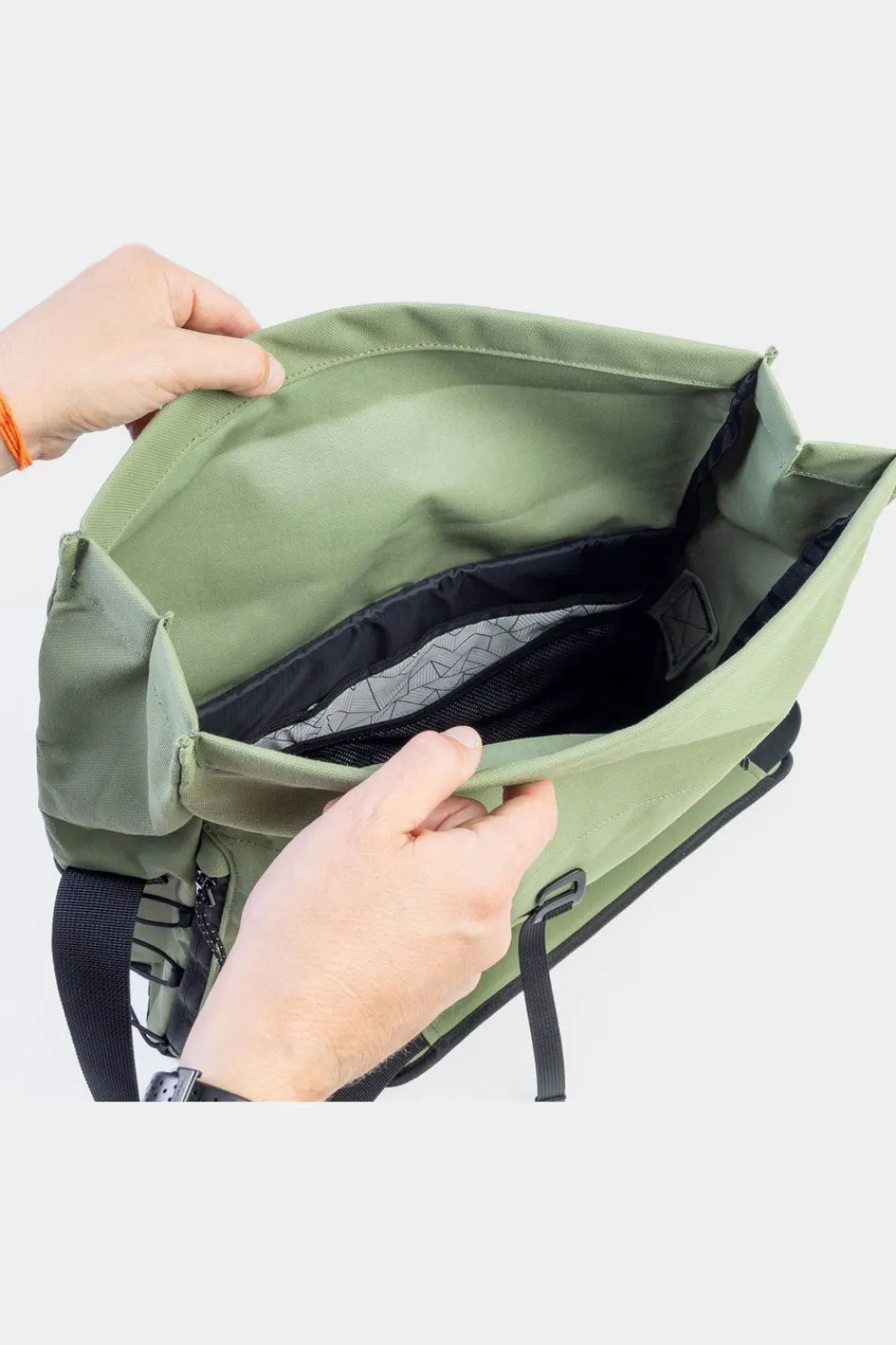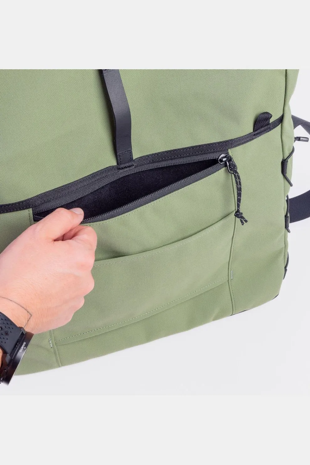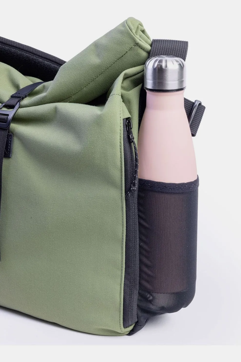 Deze minimalistische tas is verrassend veelzijdig. Gebruik hem als laptoptas, fototas, verzorgingstas, yogatas of zelfs als handwarmer. Dankzij de roll-top sluiting pas je het volume eenvoudig aan van 10 tot 20 liter.