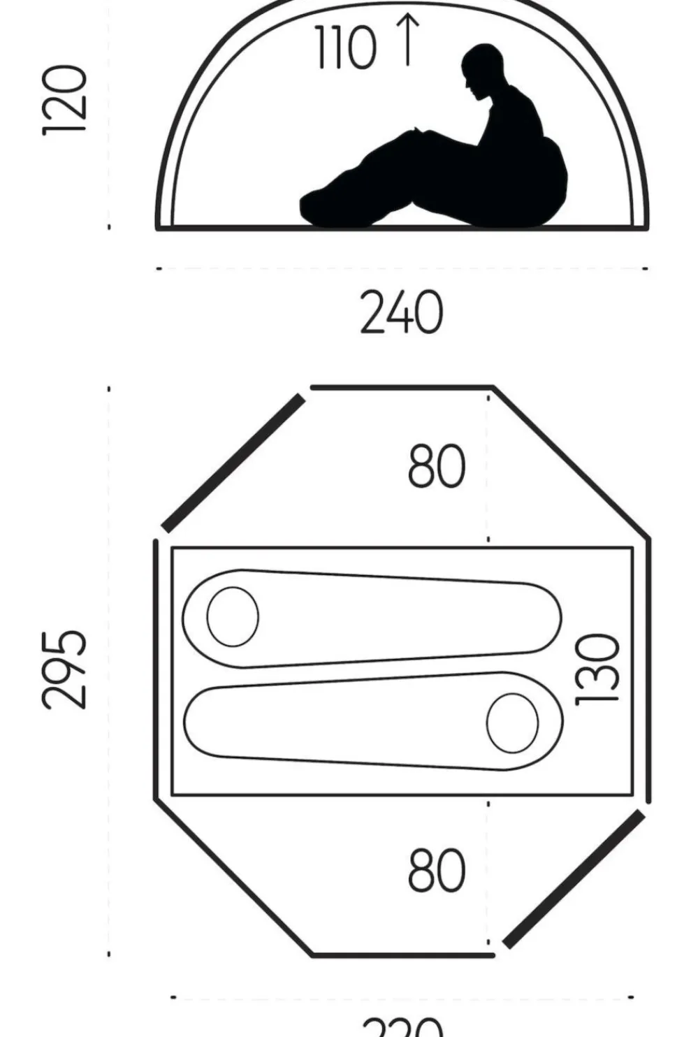 | Buitentent afmetingen (L x H x B) | 295 x 220 x 120 cm |