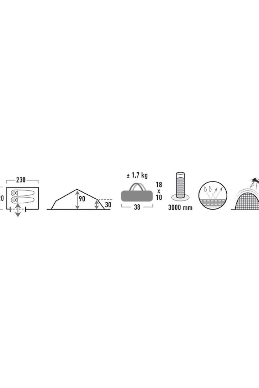 | Binnentent afmetingen (L x H x B) | 120 x 230 cm |