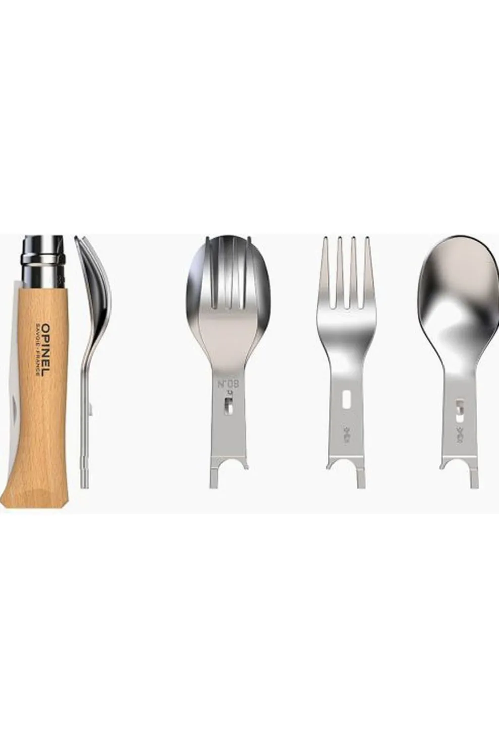 – twee inzetstukken, een vork en een lepel, te bevestigen op het heft van een mes nr. 08