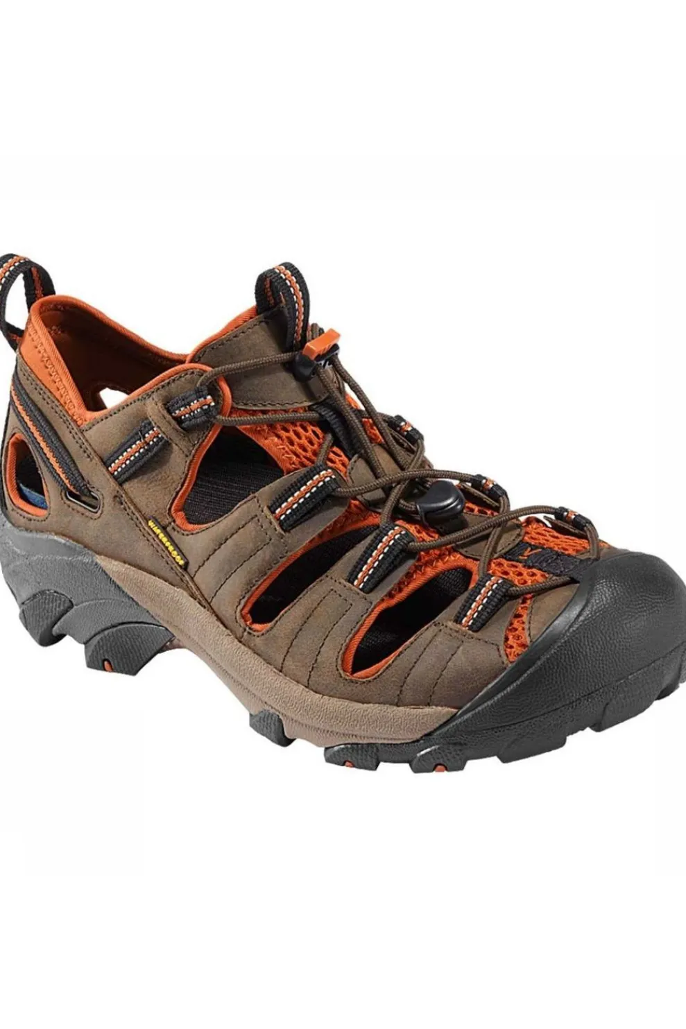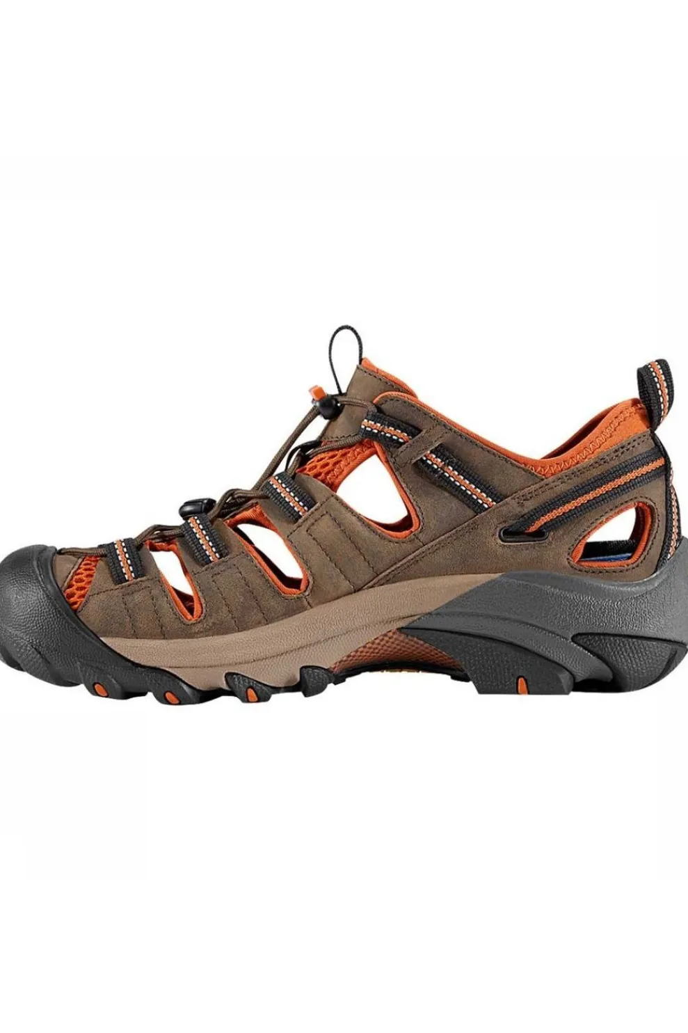 Deze sportieve sandaal lijkt wel heel veel op een lage wandelschoen. Met z’n stevige bovenwerk en rubber neus is je voet goed beschermd tegen scherpe takken en stenen. De stevige zool met profiel brengt je op plekken waar normale sandaaltjes niet komen en de gemakkelijke sluiting met een elastisch koord maken inen uitstappen een fluitje van een cent.