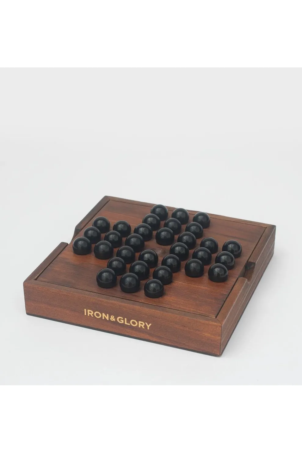 Je denkt aan het kaartspel, maar dit is het klassieke Solitaire spel – geen kaarten, alleen hout.