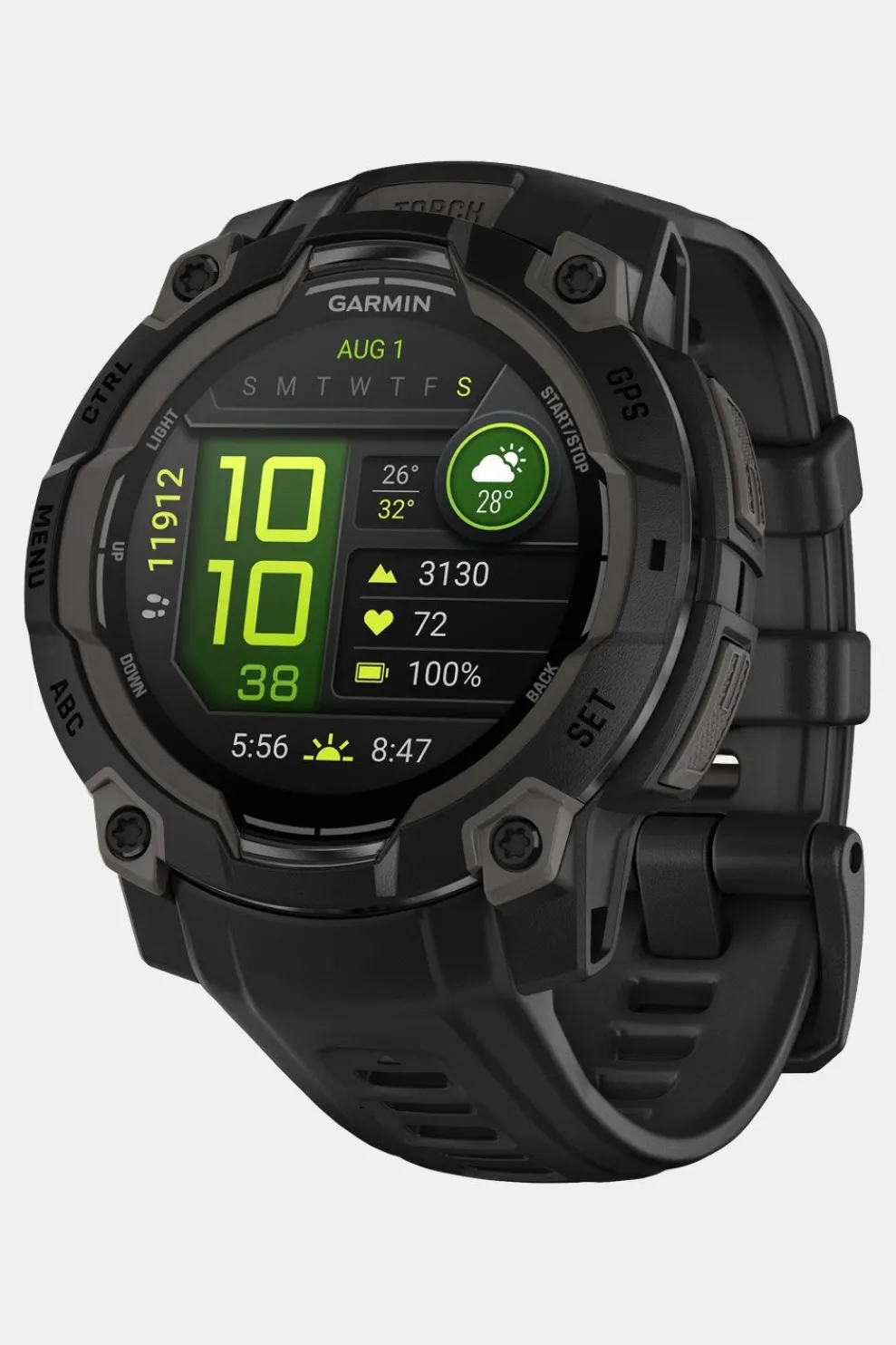 | Batterijduur | Smartwatch 18d (7d altijd aan), spaarstand 24d, GPS 32u, satellieten 25u, multi-band 23u, max GPS 68u, expeditie 16d |