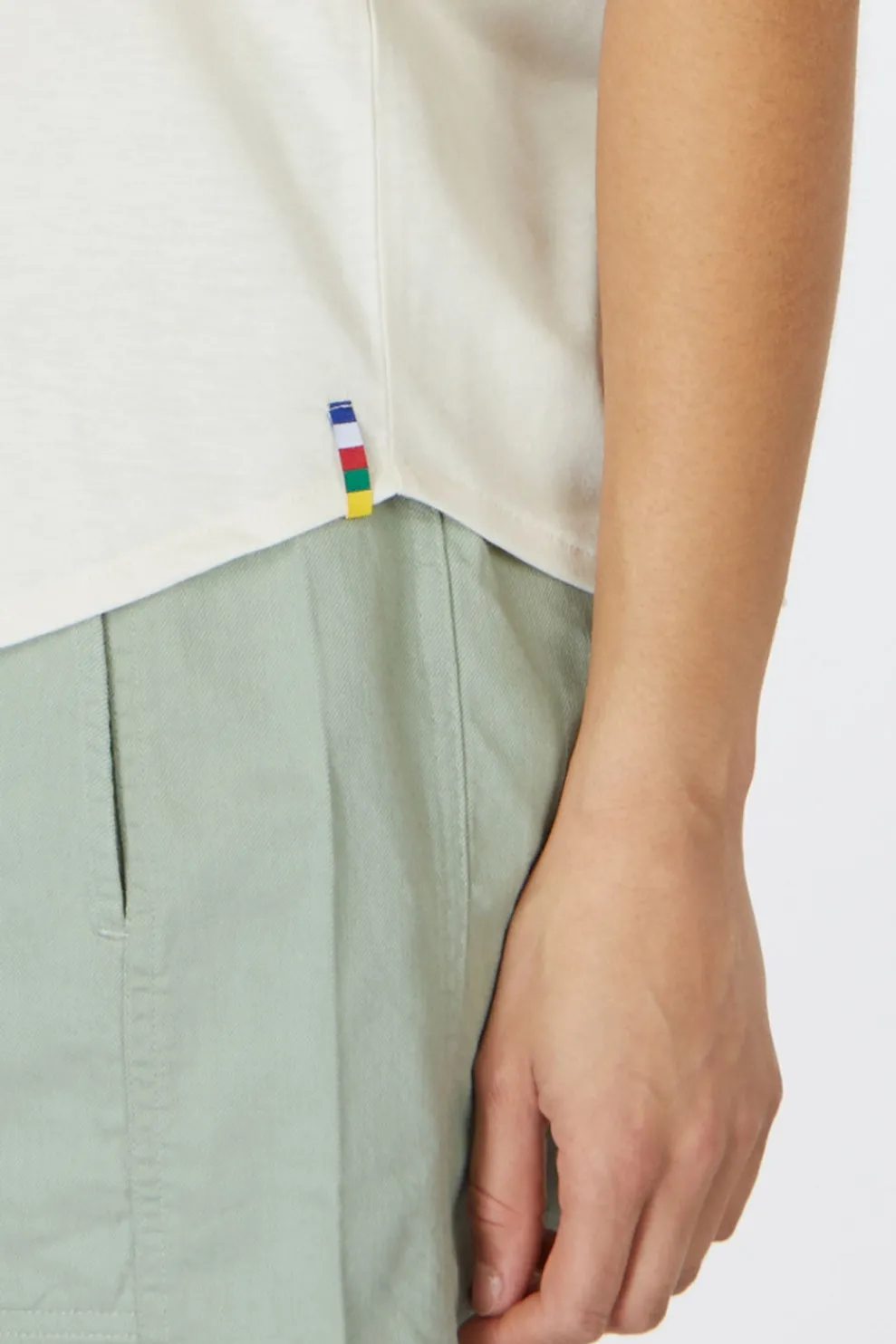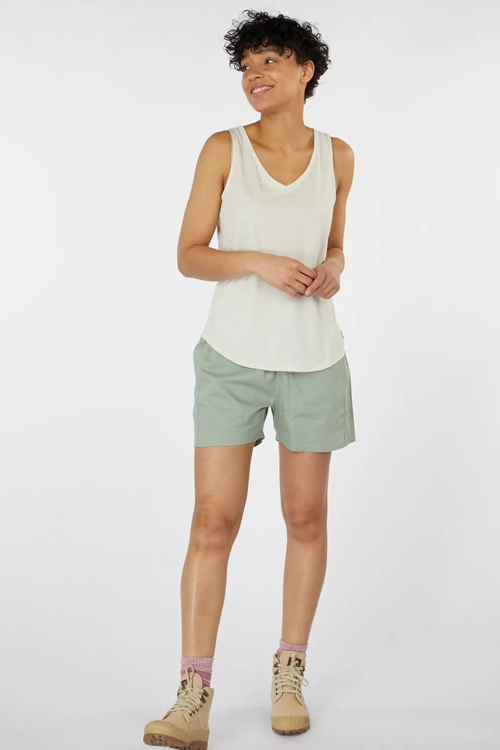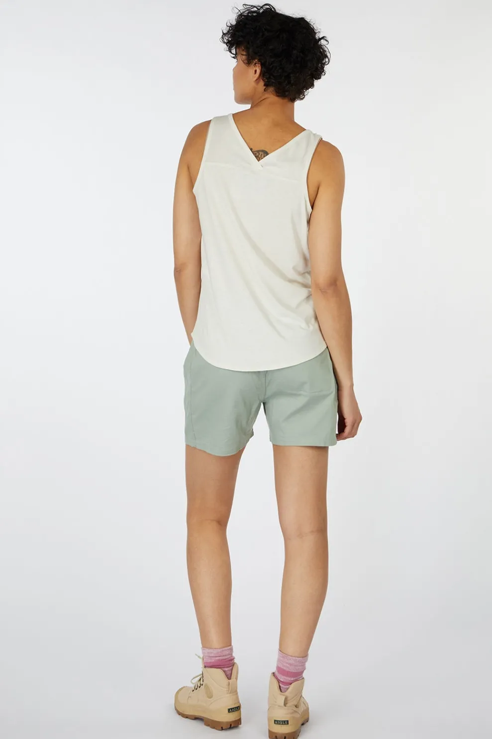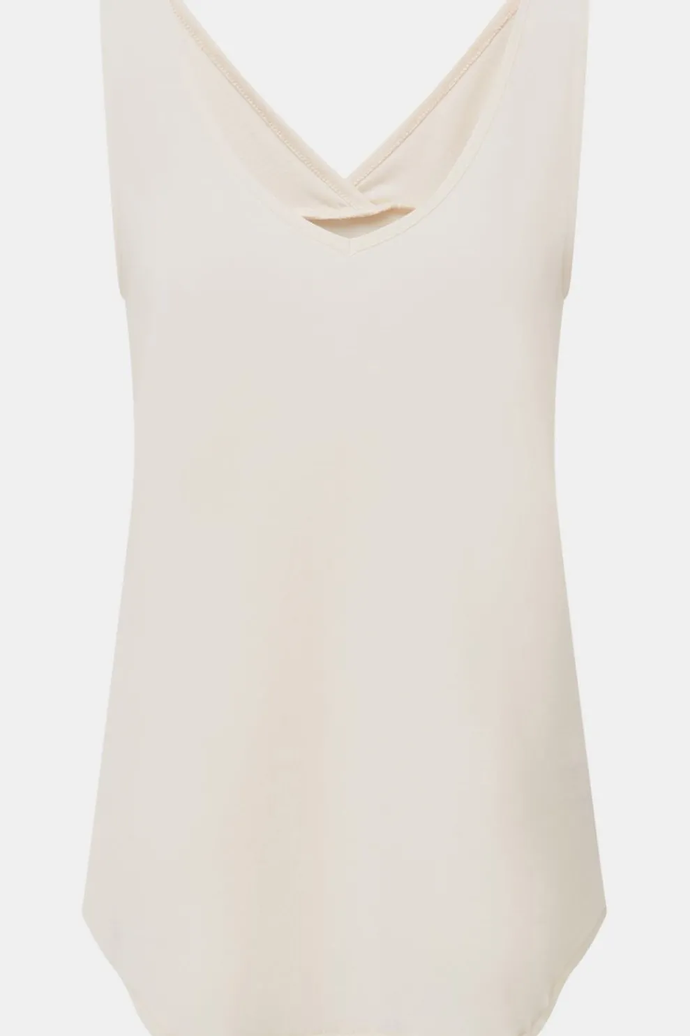 De mix van ultrazachte katoen en lichte polyester voelt heerlijk aan en houdt je moeiteloos fris. Met zijn flatterende V-hals, luchtige pasvorm en speelse overlapping op de rug combineert deze top stijl en duurzaamheid in één.