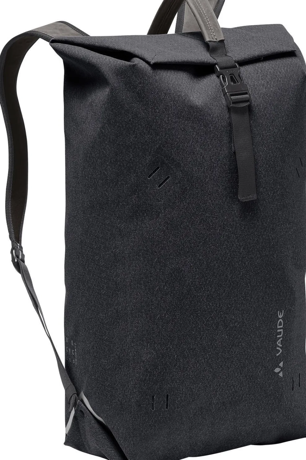 De ergonomische schouderbanden zijn gemaakt van een combinatie van Q-milk en duurzaam Terracare-leer. De rugzak zelf is gemaakt van een robuust, waterdicht en vuilafstotend materiaal dat aanvoelt als textiel; hij is voorzien van reflecterende prints en een bovenriem. Aan de voorkant zitten slimme uitsparingen voor het bevestigen van extra uitrusting zoals een veiligheidslicht, een kleine karabijnhaak of de speciaal ontwikkelde schoudertas “Egg”.
