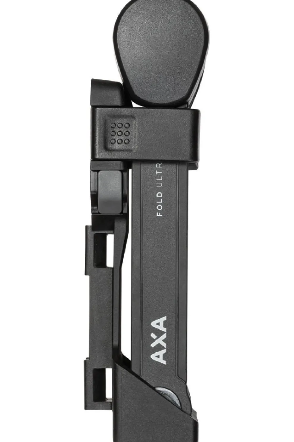 Het vouwslot wordt inclusief de nieuw ontworpen click bracket geleverd. Met 1 druk op de knop gaat de houder open en kan het slot eruit gepakt worden. Bij het terugplaatsen van het slot klik je de houder weer dicht en is het slot stevig opgeborgen. De houder kan op de bidonnokken gemonteerd worden. Mocht dat niet aanwezig zijn op de fiets, kan de houder aan de stang vastgemaakt worden met de 2 mee geleverde strips. Dankzij het antirammelmechanisme heb je tijdens het fietsen geen rammelend geluid.