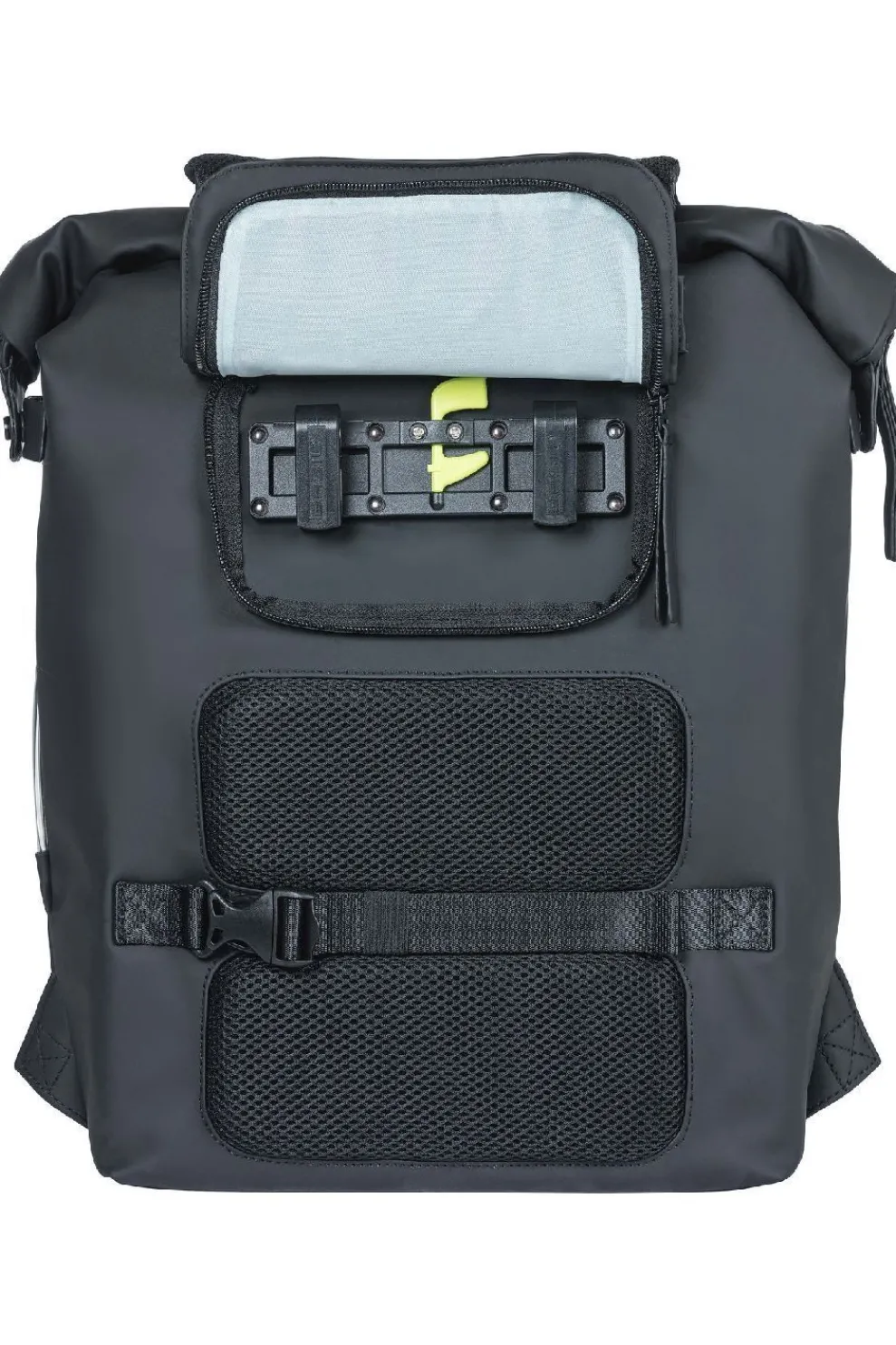 Op zoek naar avontuur in de stad? Neem dan de Basil SoHo Nordlicht fietsrugzak mee en je bent op alles voorbereid. De zwarte fietstas is namelijk voorzien van allerlei slimme functies. Zo heeft de tas een geïntegreerde LED-strip waardoor je beter zichtbaar bent in het donker. Daarnaast is de tas waterdicht (IPX3), waardoor er geen druppel water je tas inregent. De getapete naden en de roltopsluiting dragen hieraan bij. De roltopsluiting bevestig je aan de zijkanten van de tas. Gemaakt van mat PU-materiaal dat erg zacht aanvoelt.