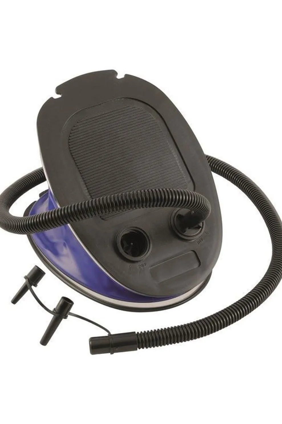 Voetpomp om matrassen op te blazen en leeg te laten.