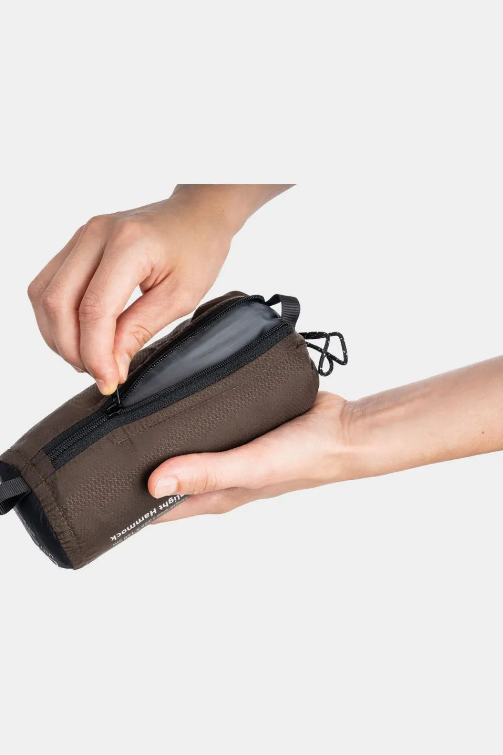Het slim ontworpen opbergzakje is voorzien van een rits over de lange zijde. Zo kun je gemakkelijk de hangmat in de foudraal proppen en door de rits dicht te ritsen maak je het zakje weer compact.