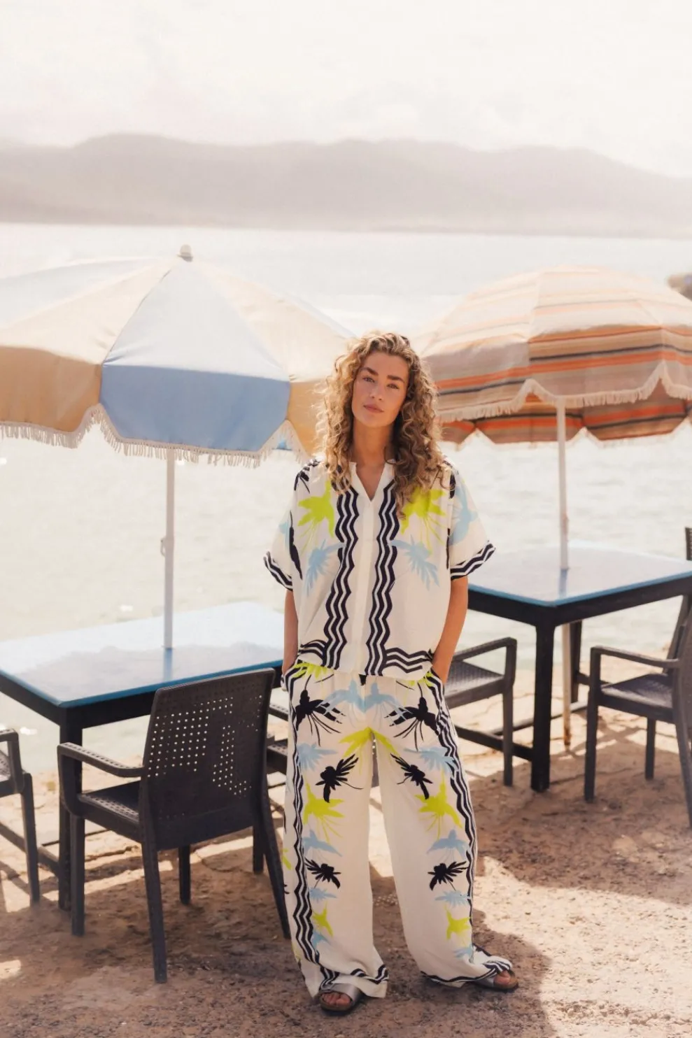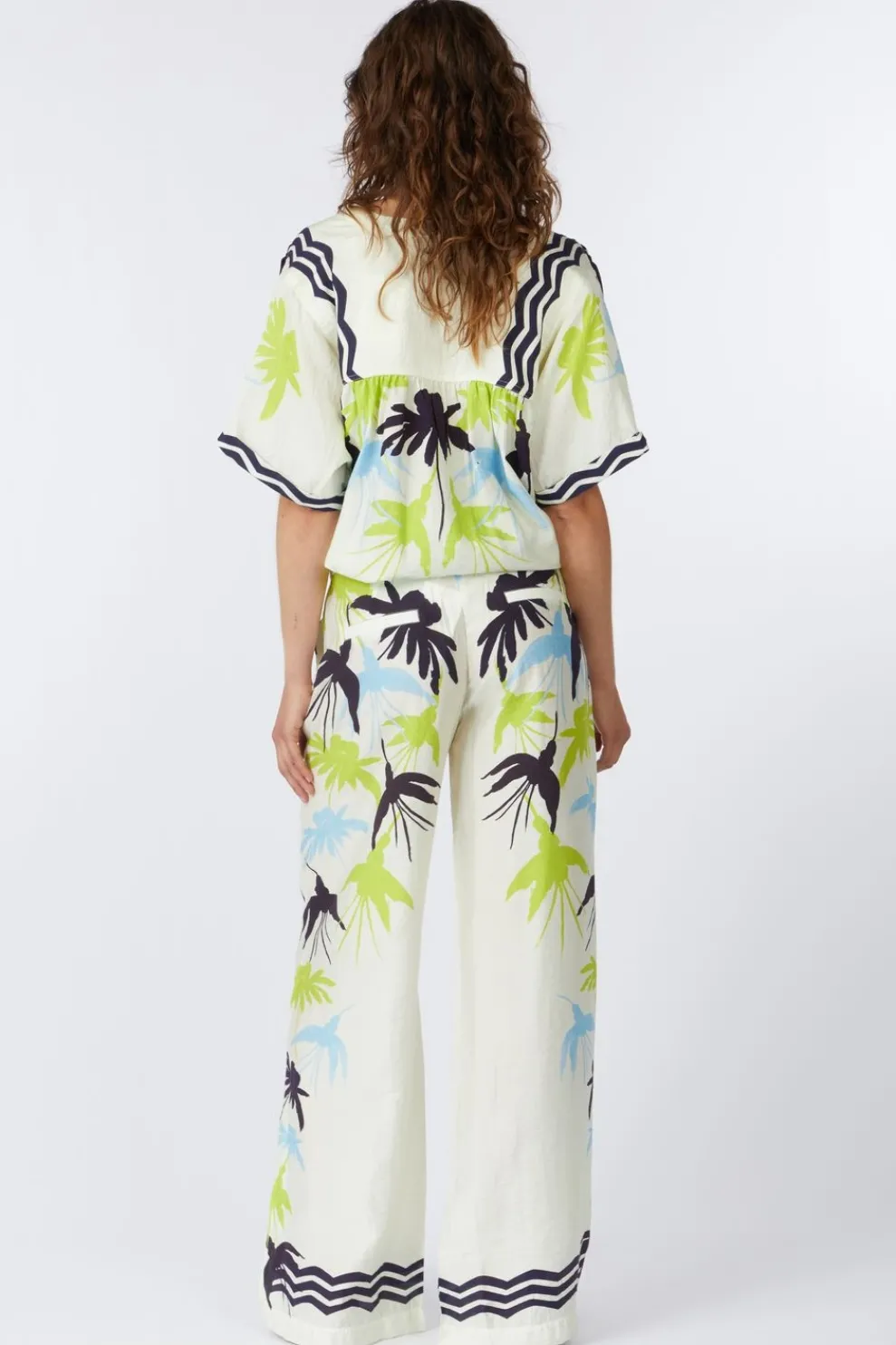 New Pom Amsterdam Broek Artisan Lime White