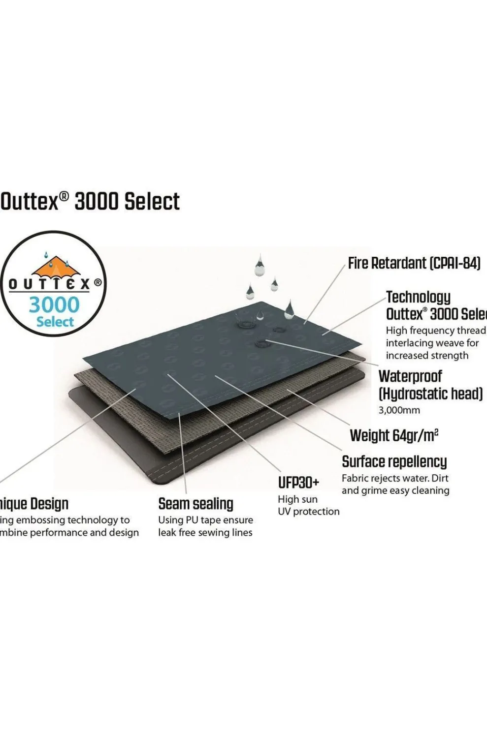 | Materiaalnaam buitentent | Outtex® 3000 Select, 100% polyester |