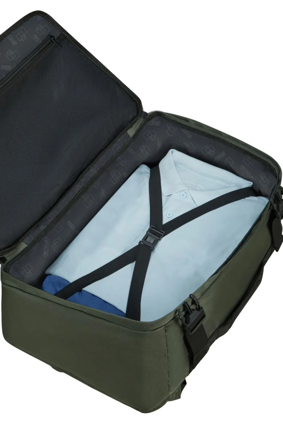 De stoffen aan de binnen- en buitenkant zijn gemaakt van 17 gerecycleerde petflessen met behulp van onze Recyclex materiaaltechnologie.
