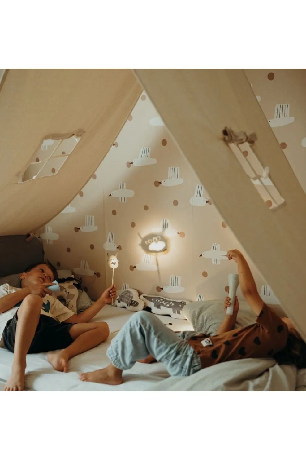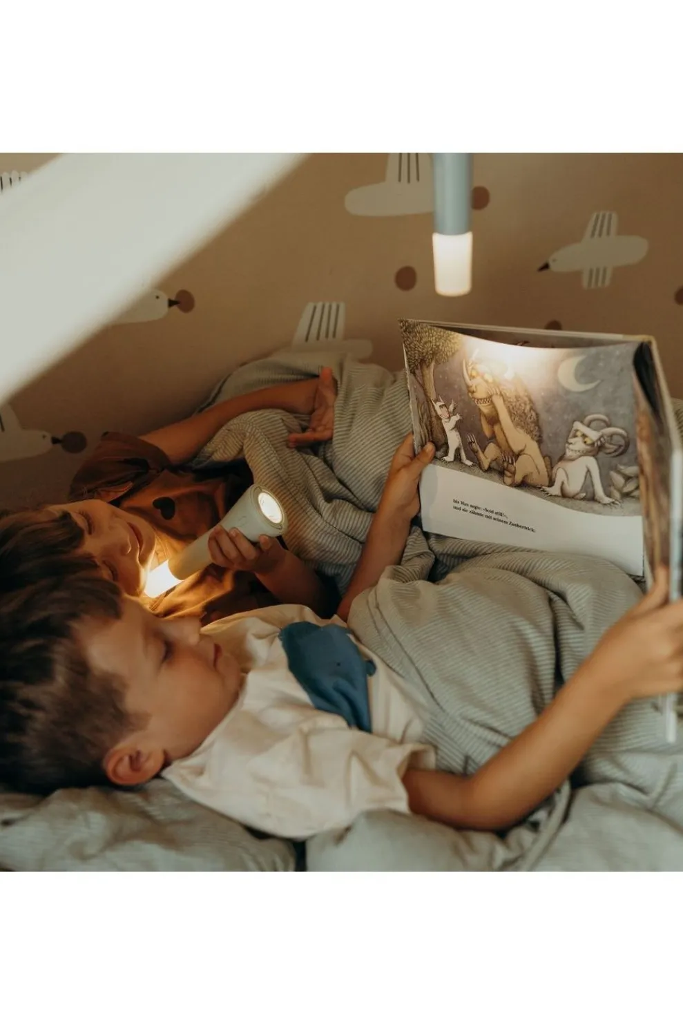 Deze veelzijdige zaklamp stimuleert de verbeelding door spel met licht en schaduw, wat het bedtijdritueel speelser en geruststellender maakt. De eenvoudige bediening zorgt ervoor dat kinderen er zelfstandig mee kunnen omgaan, waardoor ze een gevoel van zelfvertrouwen en comfort ervaren.