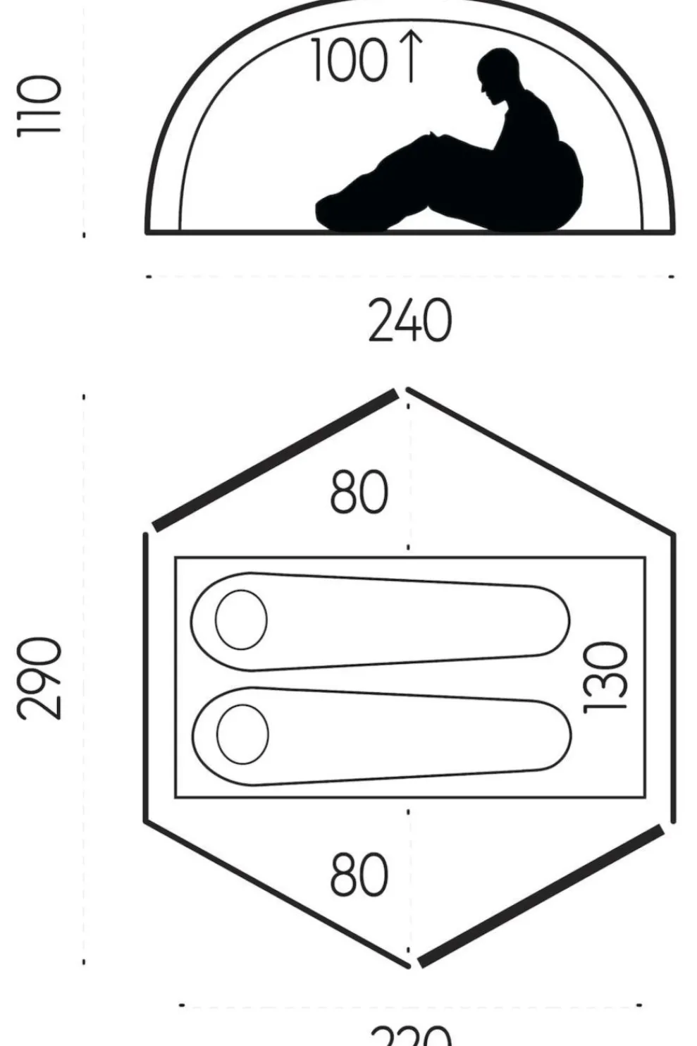 | Binnentent afmetingen (L x H x B) | 220 X 100 X 130 |
