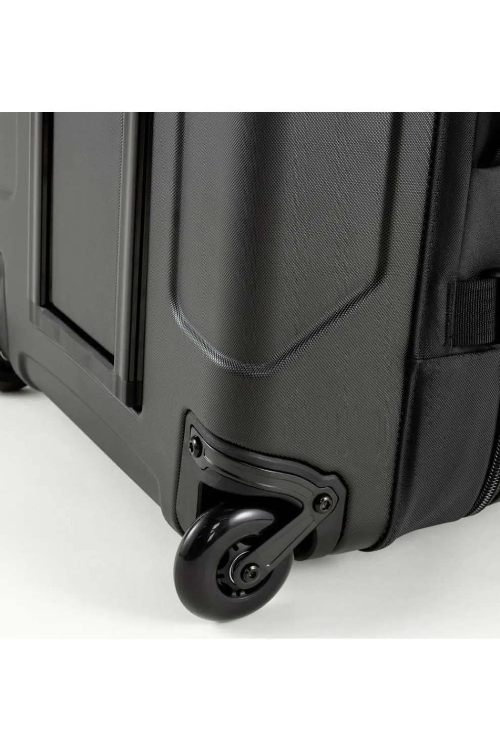 Gemaakt van gerecyclede polyamide met TPE-laminaat, een chassis van polycarbonaat en soepel rollende wieltjes die geen enkele moeite hebben met de hobbels op de weg. De voorkant is licht gewatteerd om de inhoud te beschermen en het buitenvak aan de bovenkant heeft een speciale ruimte zodat spullen niet geplet worden als de tas vol is. Hij kan in het midden worden opgedeeld, waardoor het nog eenvoudiger wordt om je spullen te organiseren. Compressiebandjes aan de buitenkant, en koorden en verdeler met meshvakken aan de binnenkant houden spullen op hun plek.